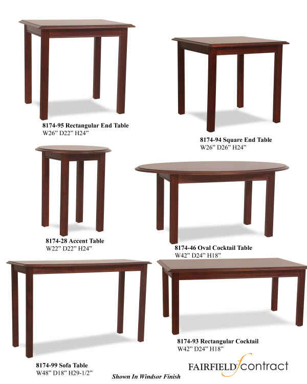 All Series Feature a Rectangular End Table; Square End Table; Accent Table; Sofa Table; Oval Cocktail Table & Rectangular Cocktail Table